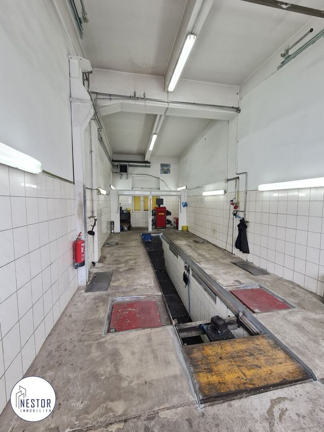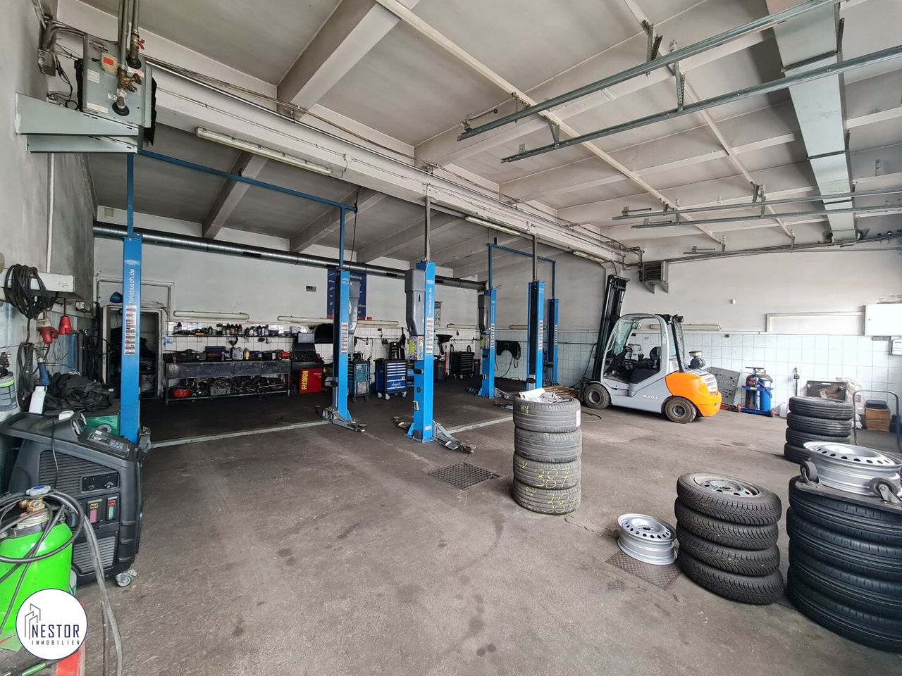 (davon 5 Hebebühnen, 1 Kanalgrube, mechanische Ausstattung für die Ausgabe des Pickerls bis 3,5 T., komplettes Werkzeug) - eine Pausenräumlichkeit für Mitarbeiter sowie Garderobe, WC und Badezimmer
