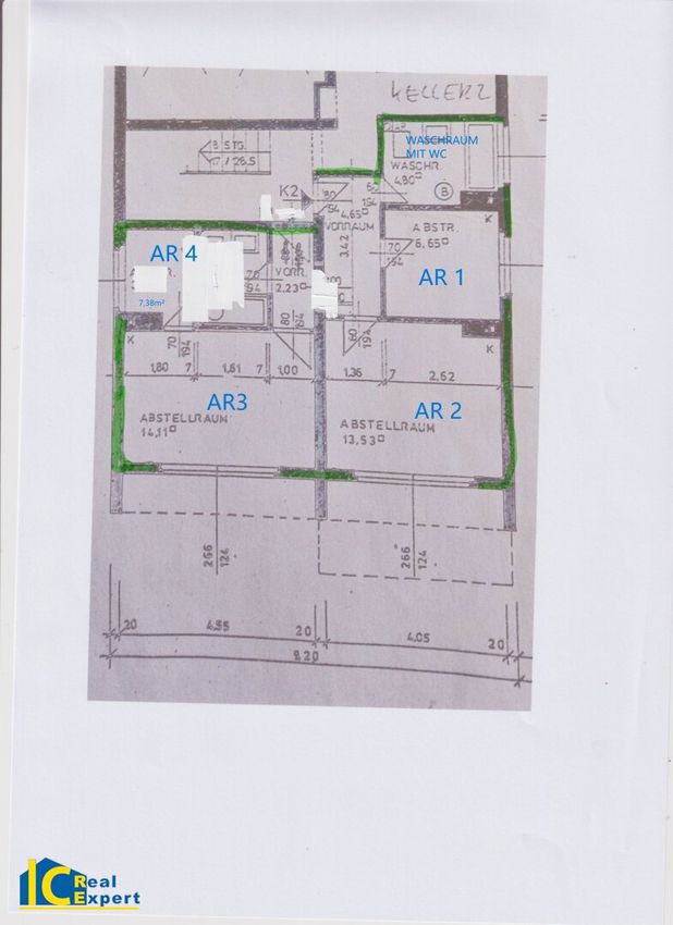 Abstellraum AR 3: 7,38m² Gesamtmiete inkl. BK und USt €126,00