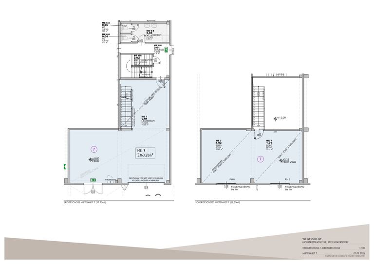 Das als Werkstatt/Lager/Büro nutzbare Objekt befindet sich im EG/OG und ist mit einer Tür und einer Garagentür versehen. Das Büro ist innen über Stufen erreichbar, WC ist im Stiegenhaus.