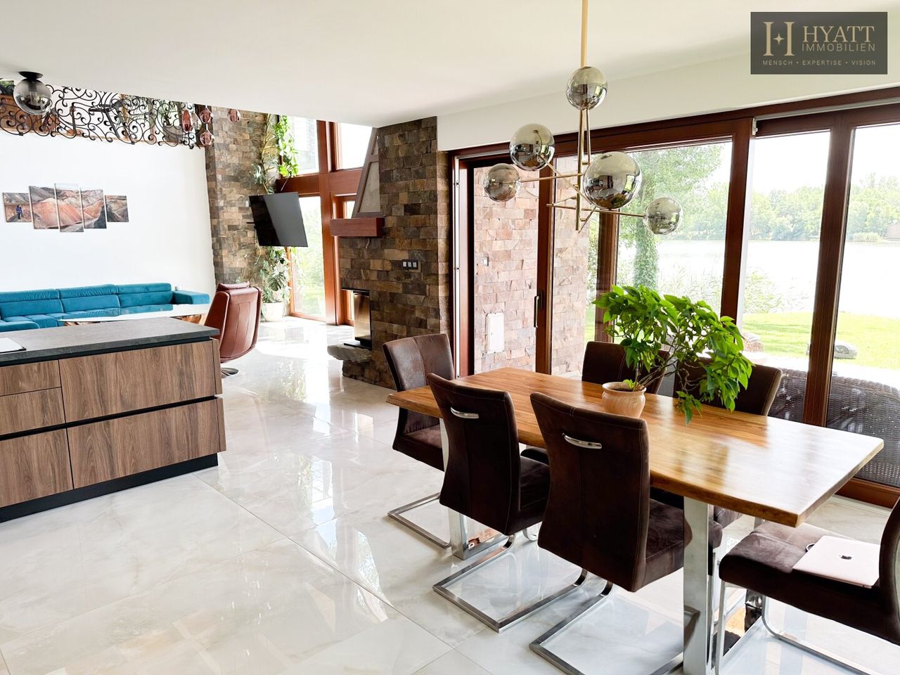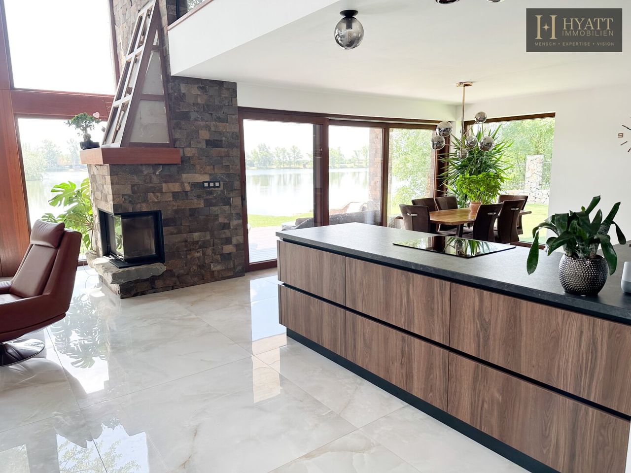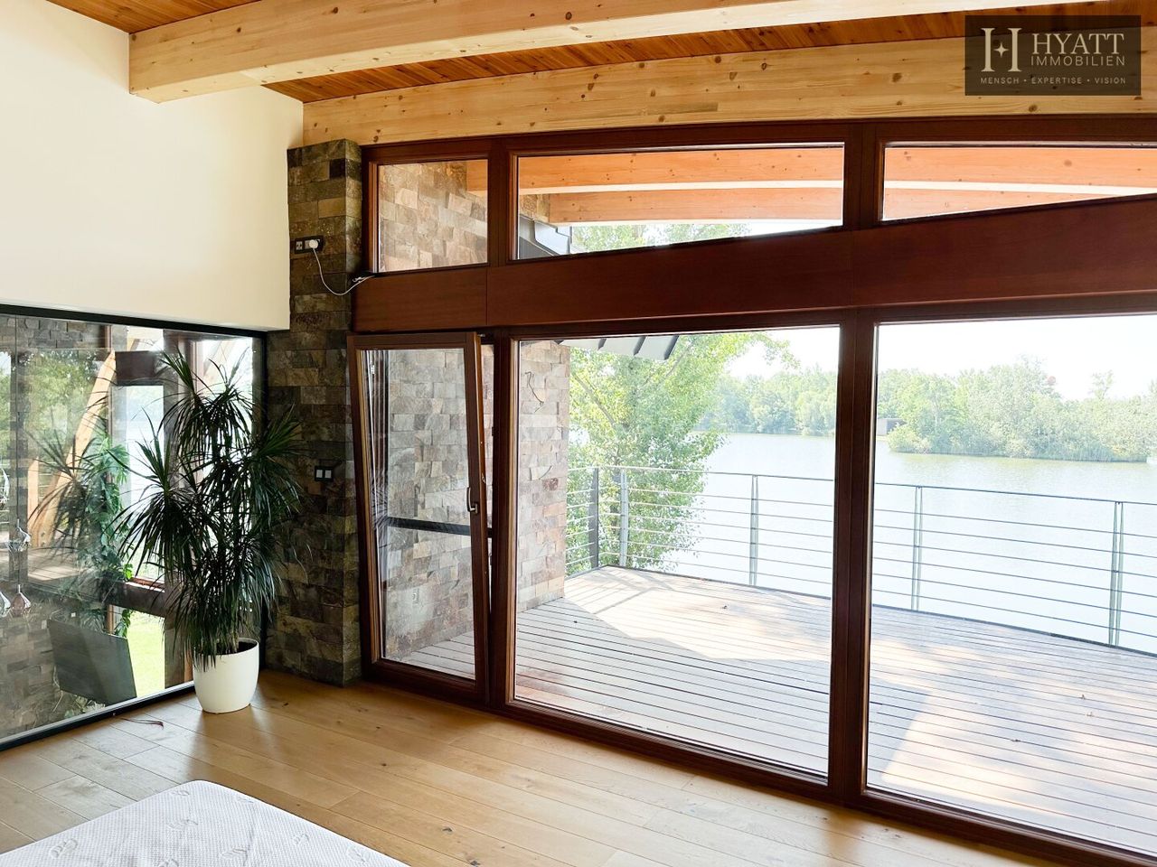 Diese außergewöhnliche Villa vereint modernes Design mit hochwertigen Naturmaterialien und exklusiver Ausstattung. Inspiriert vom kalifornischen Lake-Tahoe-Stil bietet das Anwesen ein einzigartiges Wohngefühl direkt am Wasser mit privatem Strandzugang.