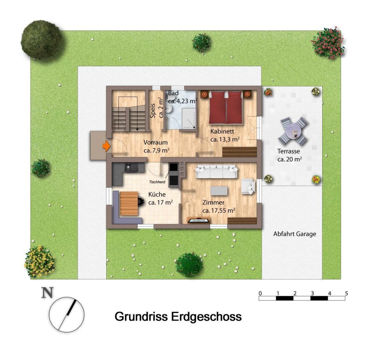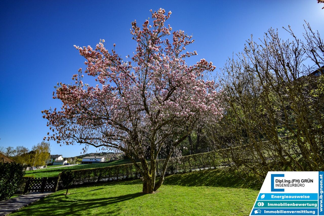 Ein echtes Highlight ist das großzügige Grundstück mit schönem Baumbestand. Die Liegenschaft wirkt ausgesprochen grün, ruhig und privat. Kaum Nachbarn, viel Freiraum und die unmittelbare Nähe zur Natur schaffen hier eine Wohnqualität, die man nur selten findet. Die Terrasse, der Garten und das umliegende Grün bieten beste Voraussetzungen für entspannte Stunden im Freien.