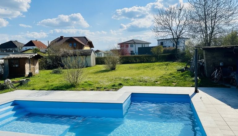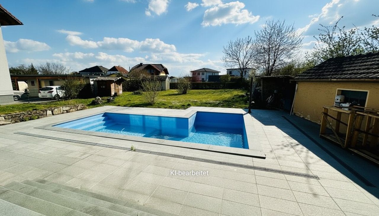Die Garage, ein Kamin, der Pool und der große Garten runden dieses attraktive Angebot ab.