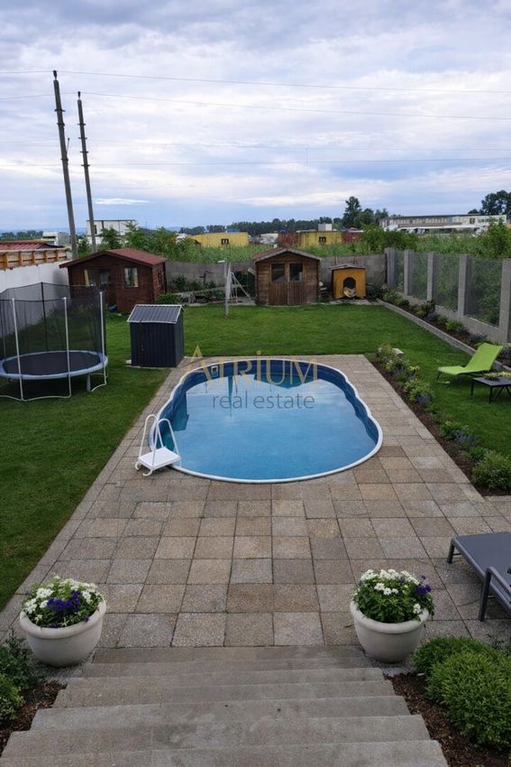 Auf einem 669 m² großen Grundstück in einer ruhigen Wohnsiedlung befindet sich ein Bungalow (BJ 2015) mit Pool, Garage und weiteren 3-4 Parkplätzen.