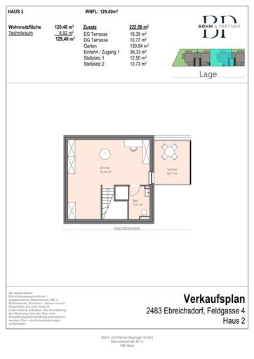 Über das geräumige Vorzimmer gelangt man in die großzügige, offene Wohnküche. Große Glasfenster sowie die Terrasse sorgen für Helligkeit und bieten einen schönen Ausblick in den Eigengarten. Der Gartenbereich verfügt über eine gemütliche Terrasse, welche über das Wohnzimmer begehbar ist. Auf dieser Ebene befindet sich außerdem ein WC mit Fenster und Handwaschbecken sowie einem Technik-/Abstellraum.
