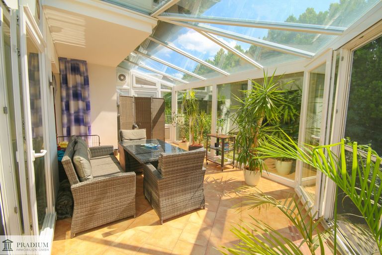 - Pool, Sauna, Wintergarten ca. 20 m² und glasüberdachte Terrasse: Diese luxuriösen Features bieten ideale Bedingungen für Entspannung und Wohlbefinden.