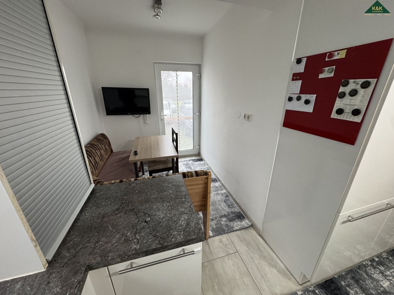 Beim Essbereich gibt es eine Tür zum Ausgang auf eine mögliche Terrasse.
