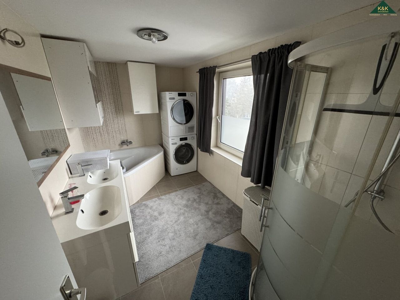 - Bad mit Wanne, Dusche und Doppelwaschbecken 7,56 m²