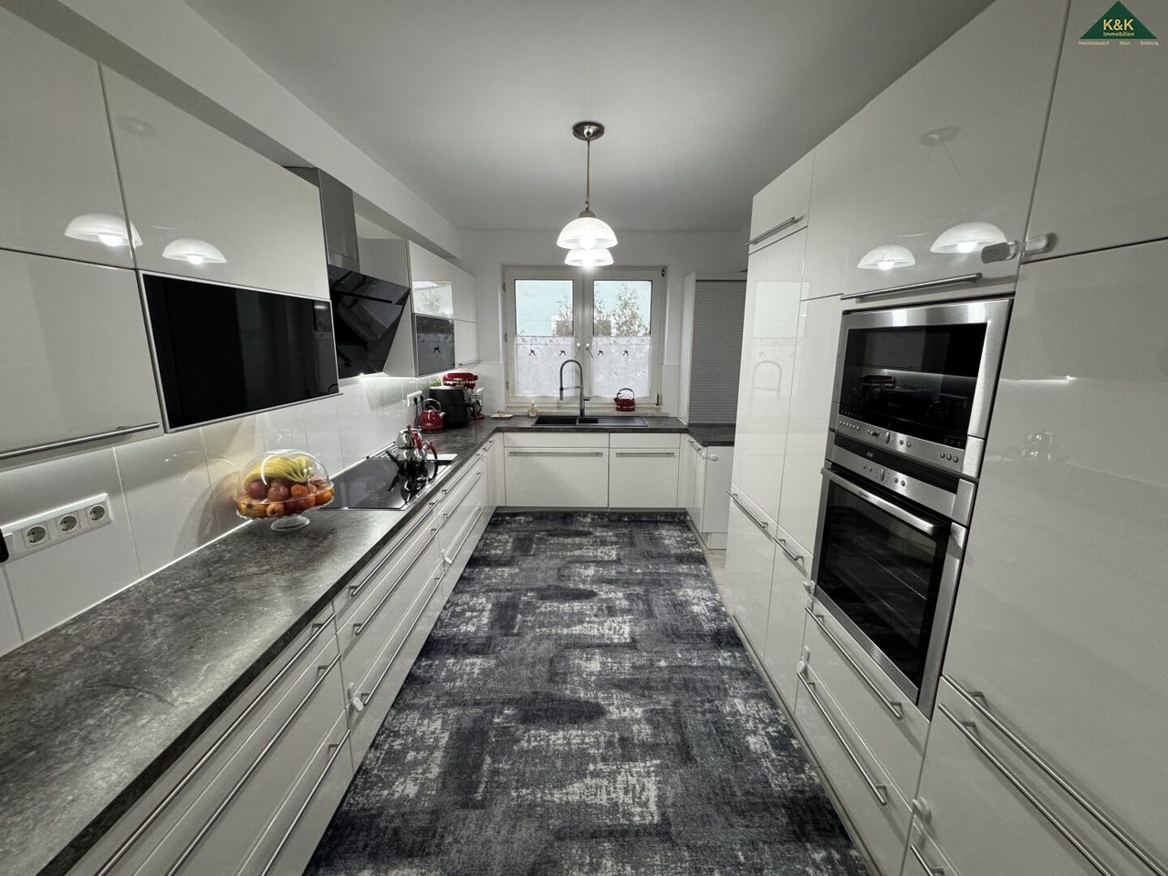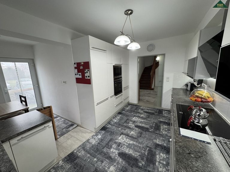 Die großzügige Küche, komplett eingerichtet, erreicht man auch über die Diele.