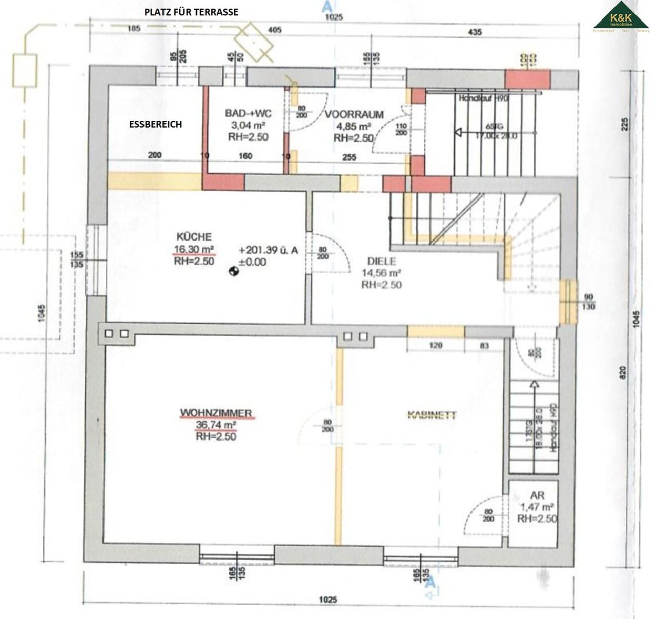 - Terrasse beim Ausgang vom Essbereich möglich