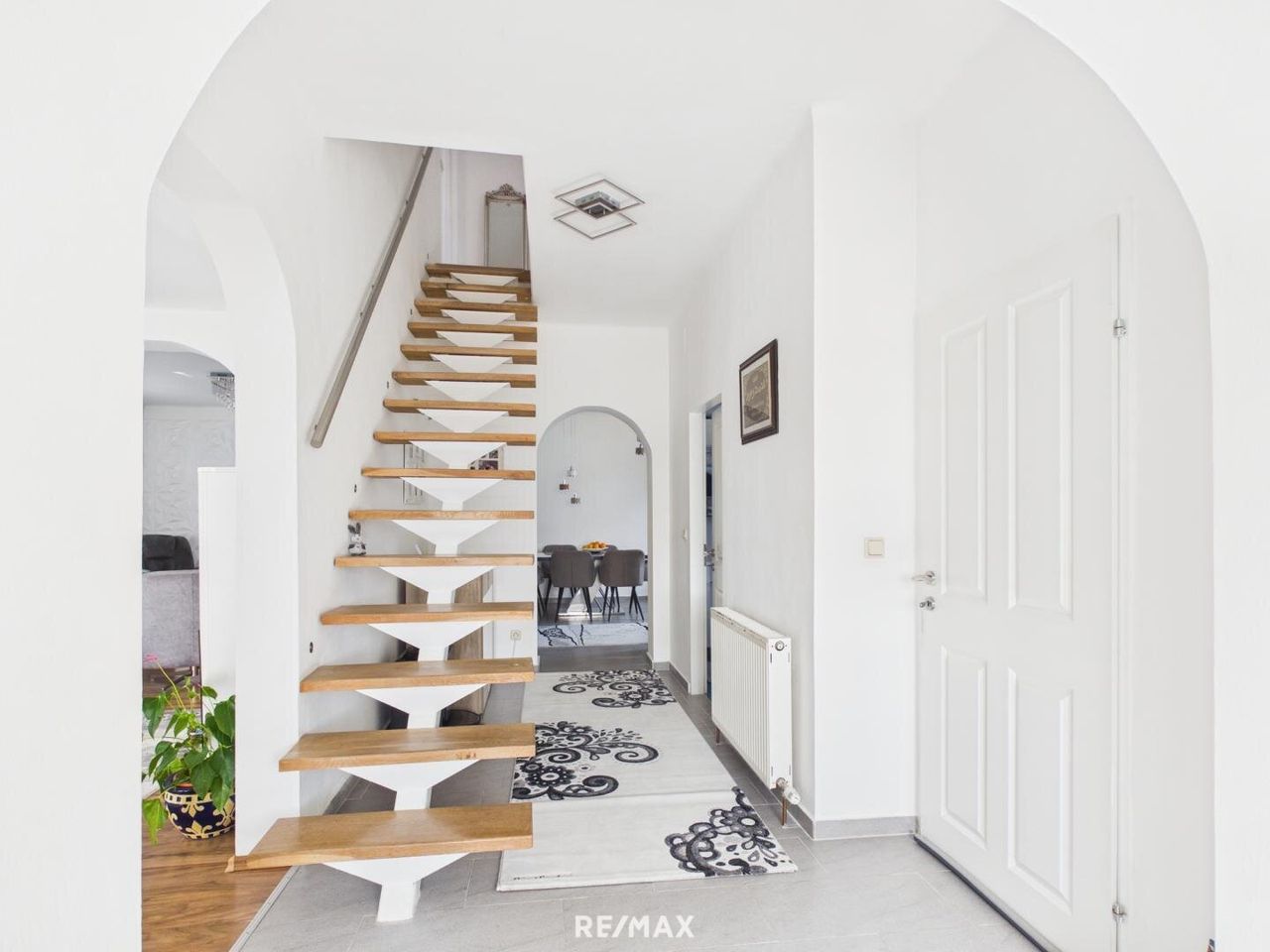 Ein besonderes Highlight im Erdgeschoss ist der großzügige und neuerrichtete Wintergarten, der zusätzlichen Wohnraum schafft und einen wunderbaren Blick in den Garten eröffnet. Durch seine großen Glasflächen entsteht ein lichtdurchfluteter Raum, der sich ideal als Essbereich, Ruhezone oder Treffpunkt für Familie und Freunde eignet. Als nächstes empfängt Sie ein geräumiger Vorraum, der ausreichend Platz für Garderobe und Stauraum bietet. Von hier aus gelangen Sie in den zentralen Wohnbereich des Hauses. Das helle Wohnzimmer bildet das Herzstück der Immobilie mit viel Platz für gemütliche Stunden mit der Familie oder gesellige Abende mit Gästen.
