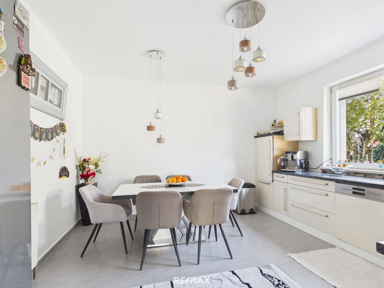 Die separate Küche ist modern eingerichtet und bietet genügend Raum für einen Essbereich. Große Fenster sorgen auch hier für eine helle und freundliche Atmosphäre.