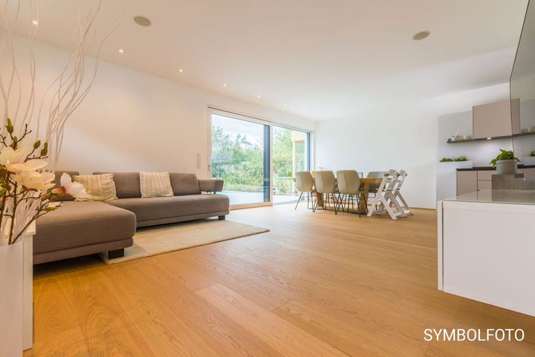 Der Garten und die Terrasse bieten viel Platz für Spiel und Spaß. Entspannen Sie, lassen Sie die Seele baumeln und genießen Sie Ihr Paradies. Praktischerweise ist der Außenbereich von der Straße aus zugängig, wodurch Gartengeräte nicht durch das Wohnzimmer geschleppt werden müssen. Der Einkauf hingegen ist dank der Parkplätze neben dem Eingang im Handumdrehen hineingetragen.