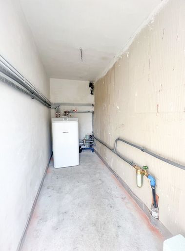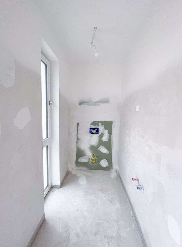 - ein geräumiges Badezimmer mit Vorbereitungen für Dusche und Badewanne und WC