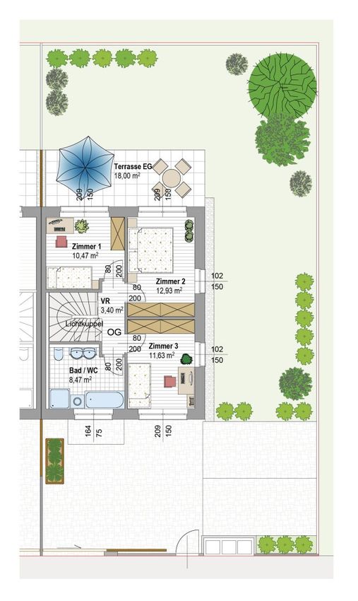 + 3 Schlafzimmer im Obergeschoss