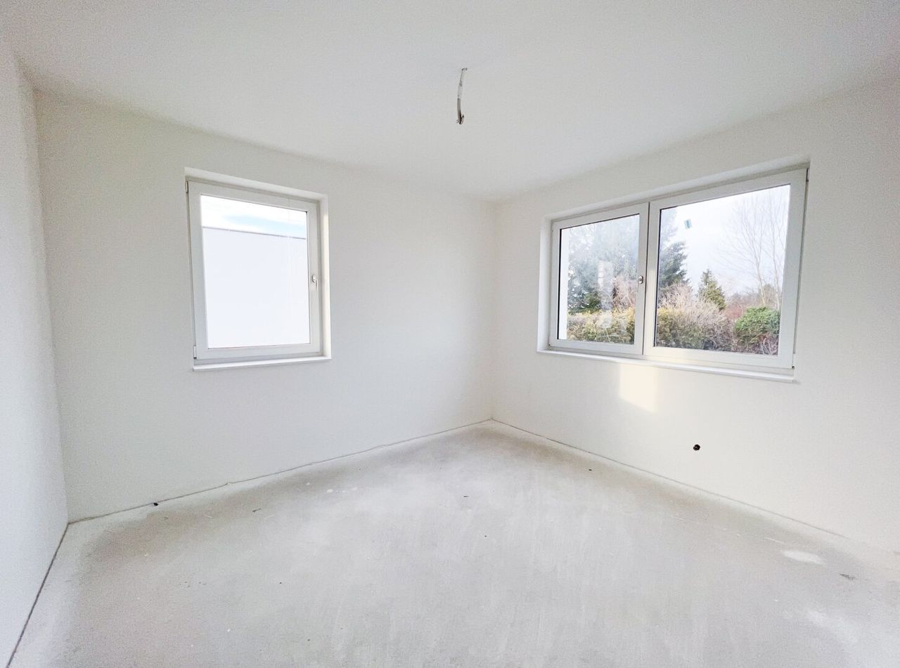 + ZIEGELMASSIVBAUWEISE + Eigengrund mit 2 Parkplätzen + Fussbodenheizung mit Luftwärmepumpe + belagsfertig + 97,05 m² Wohnnutzfläche, 18 m² Terrasse, ca. 114 m² Garten + 3 Schlafzimmer im Obergeschoss