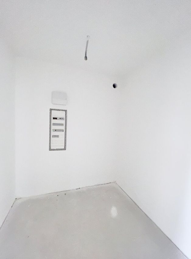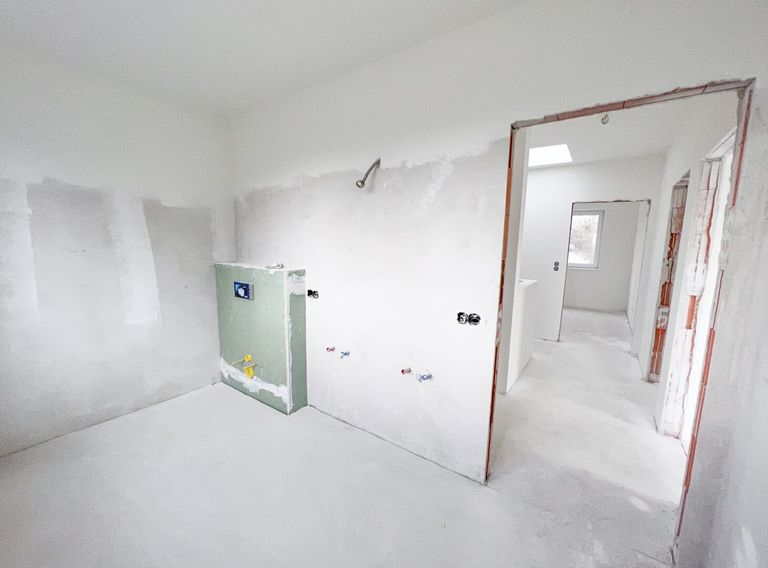 - ein geräumiges Badezimmer mit Vorbereitungen für Dusche und Badewanne und WC