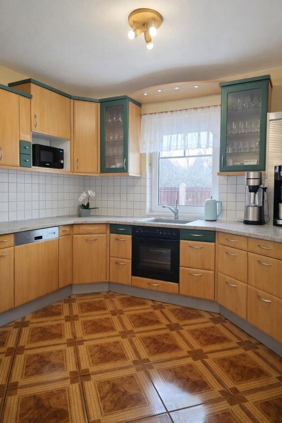 Der gepflegte Garten mit Rasenflächen, Sträuchern und einer charmanten Brunnen- bzw. Skulpturenanlage schafft Raum für Kindheit, Ruhe und gemeinsame Erinnerungen. Ein Naturstein-Sockel und ein gepflasterter Gehweg unterstreichen den hochwertigen Gesamteindruck. Hier spürt man: Dieses Haus wurde geliebt, gepflegt und bewahrt.