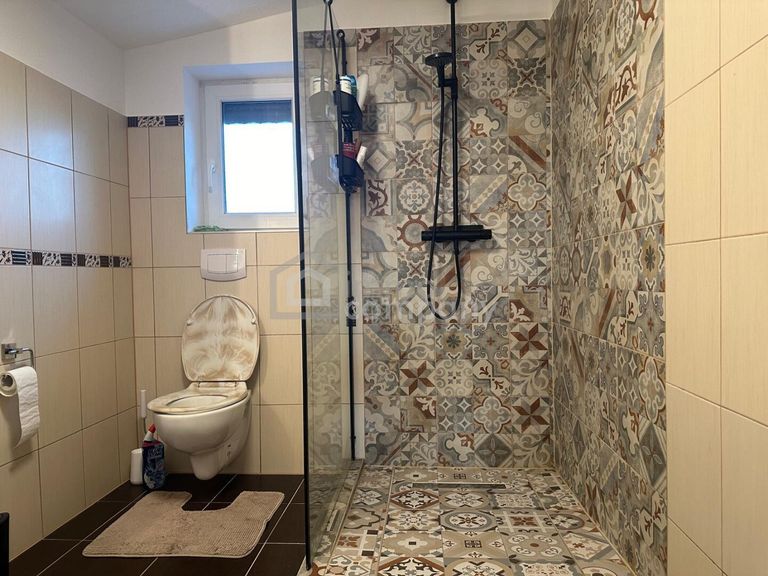 Das Haus besticht durch eine durchdachte Raumaufteilung mit einer offenen Wohnküche, die mit einer hochwertigen Einbauküche ausgestattet ist – ideal für gesellige Kochabende und gemütliche Stunden mit Familie und Freunden. Für höchsten Wohnkomfort sorgen zwei Badezimmer mit Fenstern, eines davon mit einer modernen Dusche, sowie zwei separate WCs. Die Fußbodenheizung und stilvolle Fliesen unterstreichen die hochwertige Ausstattung und sorgen für behagliche Wärme in allen Räumen.