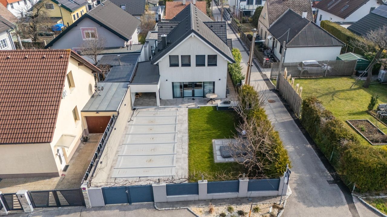 Dieses hochwertige Einfamilienhaus in Traiskirchen überzeugt durch moderne Architektur, durchdachte Raumaufteilung und eine hochwertige Ausstattung. Das im Jahr 2015 errichtete Haus befindet sich auf einem ca. 408 m² großen Eckgrundstück in angenehmer Siedlungslage und bietet dank der Positionierung des Grundstücks viel Privatsphäre ohne direkte Einsicht von Nachbarn.