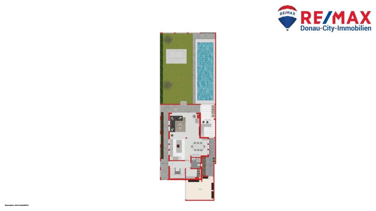Der westseitig ausgerichtete Garten lädt zum Entspannen und Genießen der Abendsonne ein. Ein besonderes Highlight ist der großzügige Pool mit Innenmaßen von 4 x 9 m, der über eine eigene Wärmepumpe beheizt wird. Die überdachte Outdoor-Küche macht den Garten zum perfekten Ort für Sommerabende mit Familie und Freunden.