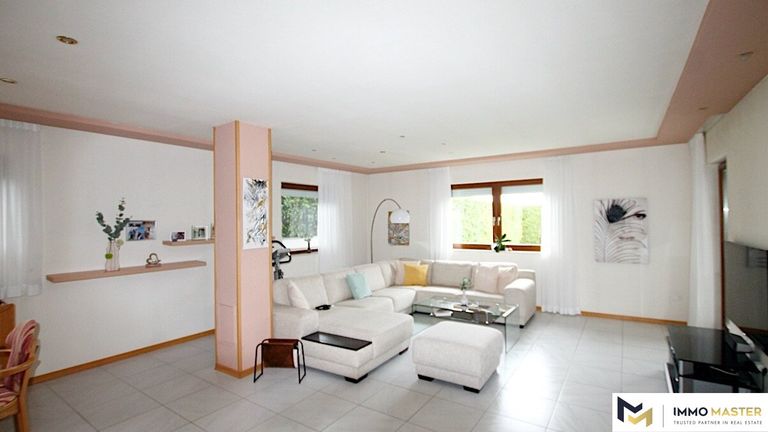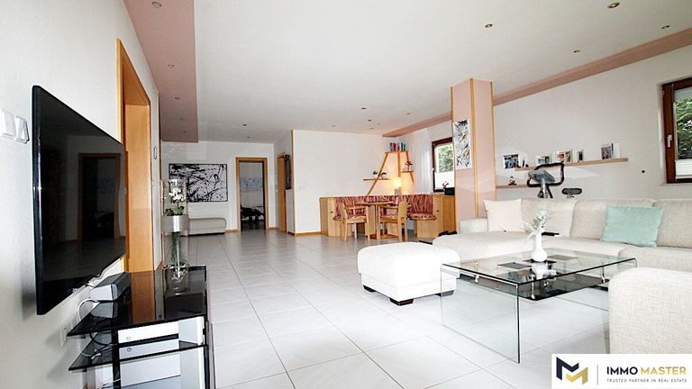 Zum Verkauf steht ein barrierefreies Einfamilienhaus, das Anfang der 90er Jahre gebaut wurde, und den heutigen Anforderungen entspricht. Der Bungalow verfügt über einen geräumigen Salon von 60m², die ein komfortables Wohnen ermöglicht. Die Geräte in der Küche sowie im Bad sind im gleichen Alter wie das Haus, und funktionieren einwandfrei. Das Badezimmer ist mit einer Dusche, einer Eck-Badewanne, einem großen Waschbecken und einer Lavastein-Sauna ausgestattet.