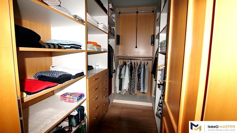 Die Zentralheizung wird von einem Viessmann-Kessel aus dem Jahr 2012 betrieben und sorgt für angenehme Wärme über die Fußbodenheizung, die gleichmäßig durch die eleganten Bodenfliesen verteilt wird. Vom Eingang aus erreichen Sie eine durchdachte Anordnung von Komforträumen wie Garderobe, Ankleide, zwei Schlafzimmer, ein Badezimmer und mehr. Der praktische Hauswirtschaftsraum bietet einen Ofen, eine Waschmaschine, einen Trockner, ein Bügelbrett und eine Trockenleine.