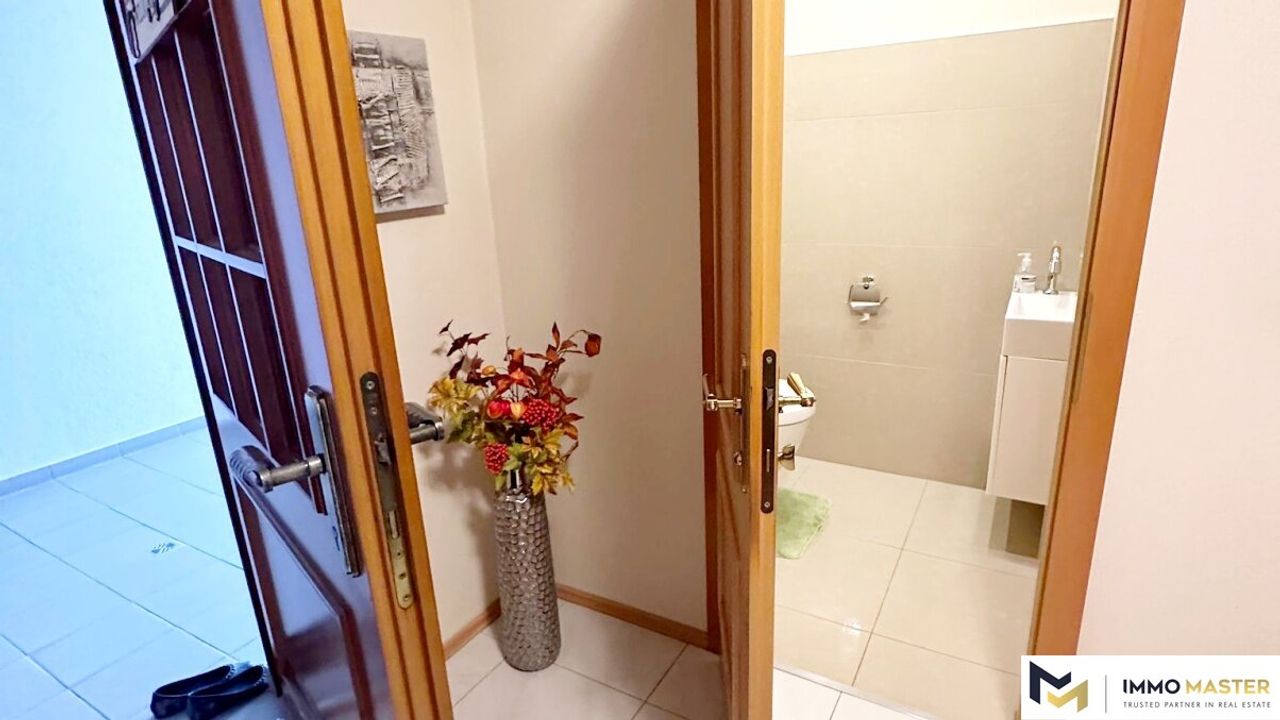Die Zentralheizung wird von einem Viessmann-Kessel aus dem Jahr 2012 betrieben und sorgt für angenehme Wärme über die Fußbodenheizung, die gleichmäßig durch die eleganten Bodenfliesen verteilt wird. Vom Eingang aus erreichen Sie eine durchdachte Anordnung...