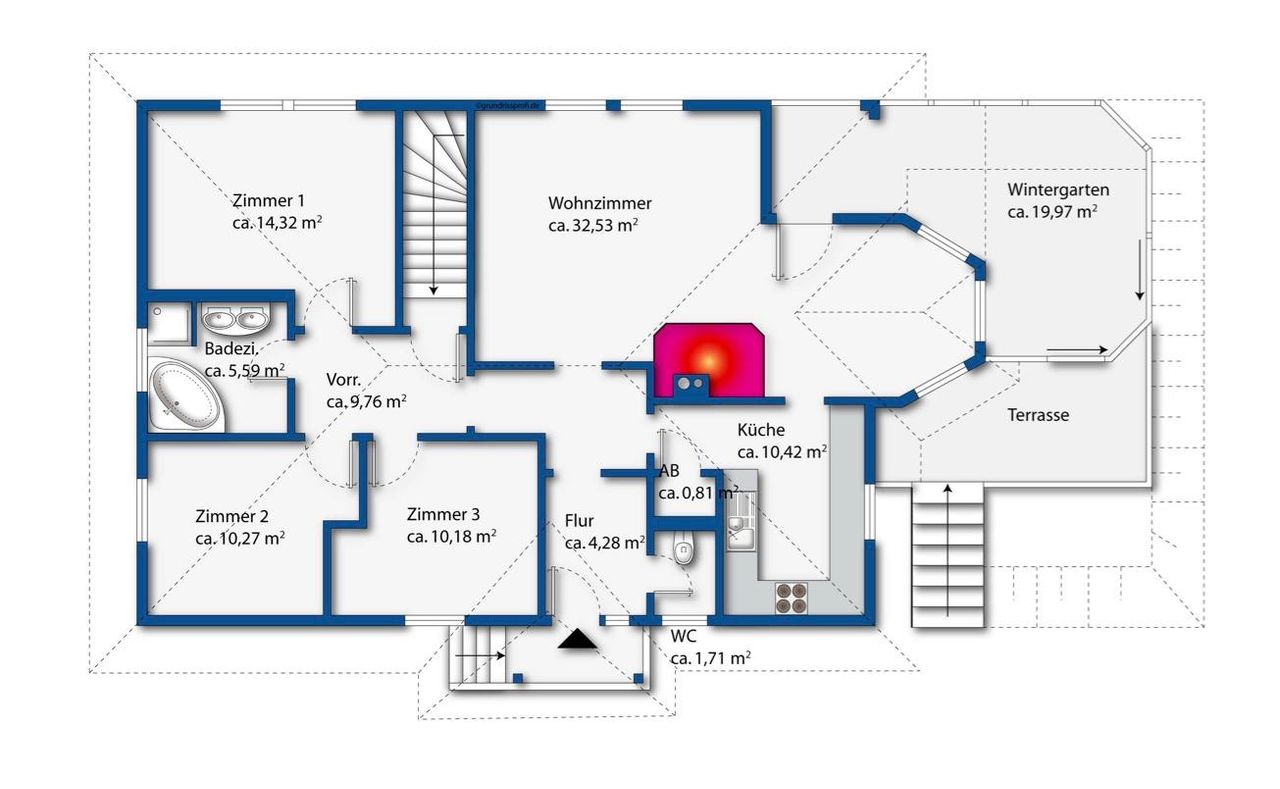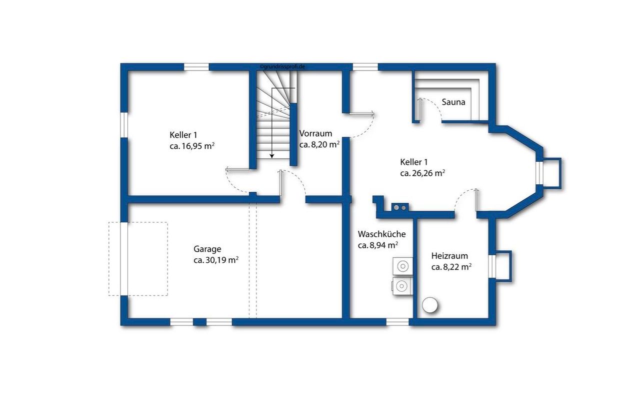 - Vollunterkellert (ca. 68,57 m²) mit Sauna, Waschküche, Dusche & WC