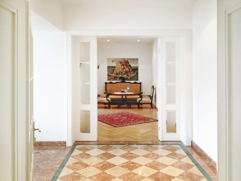 The representative manor house was originally built in the 19th century and underwent a high-quality full renovation in the 1990s. It impresses with spacious room layouts, an impressive hall, multiple living and utility areas, and a protected inner courtyard. The interior features high-quality, prestigious finishes, and the property offers versatile usage possibilities (residential, representative purposes, or special uses according to zoning).