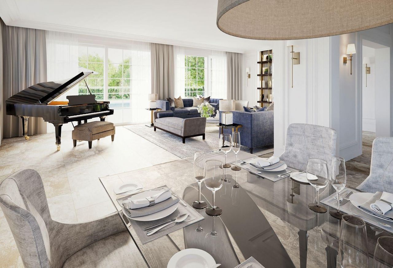 Das Obergeschoss bietet vier großzügige Schlafzimmer. Das Master-Schlafzimmer beeindruckt mit einer eigenen Garderobe sowie einem eleganten Bad en Suite, das mit hochwertigen Materialien ausgestattet ist.