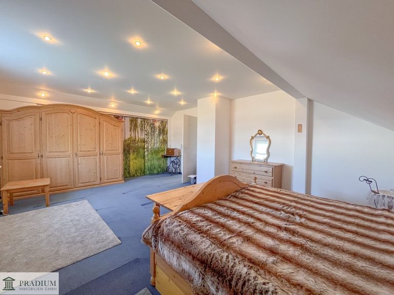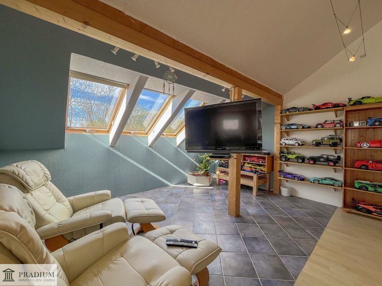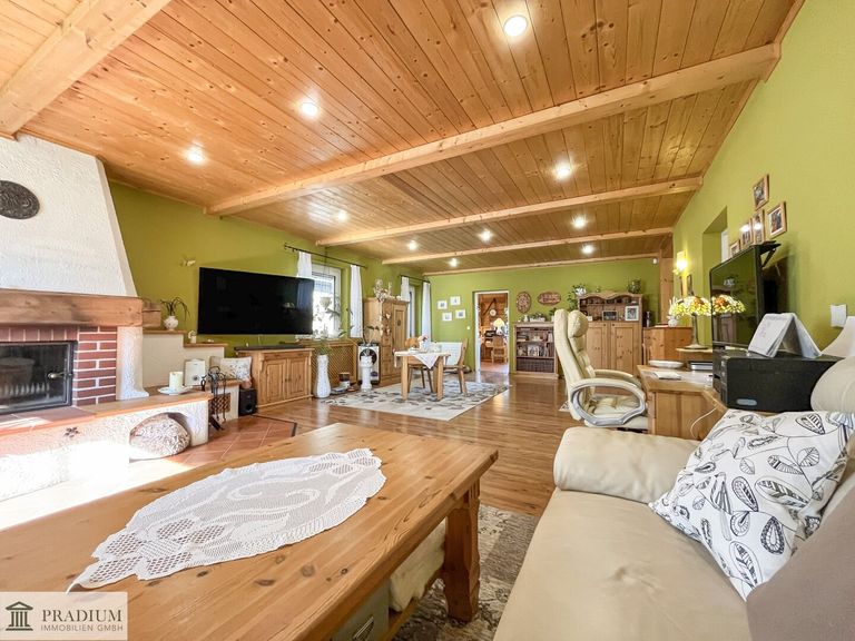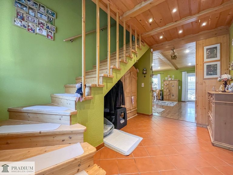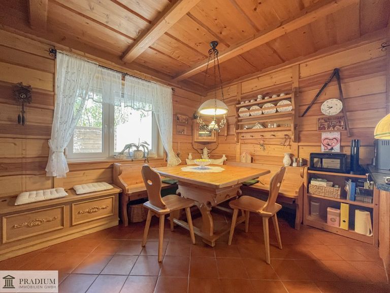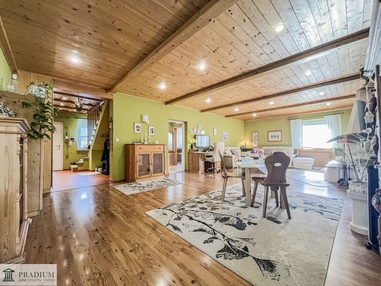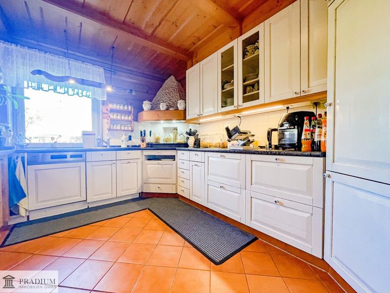Dieses charmante Einfamilienhaus im Landhausstil bietet auf ca. 220 m² Wohnfläche und einem großzügigen Grundstück von 1.098 m² ein ideales Zuhause für Familien und Naturliebhaber. Direkt angrenzend an einen kleinen Wald und weitläufige Felder, liegt es in einer ruhigen und freundlichen Wohnsiedlung. Der gepflegte Garten bietet vielfältige Nutzungsmöglichkeiten für Hobbygärtner, Spielbereiche für Kinder oder entspannte Stunden im Grünen. Das Haus besticht durch seinen traditionellen Landhausstil mit sichtbaren Holzbalken und einer harmonischen Architektur, die besonders Berg- und Naturliebhaber anspricht.