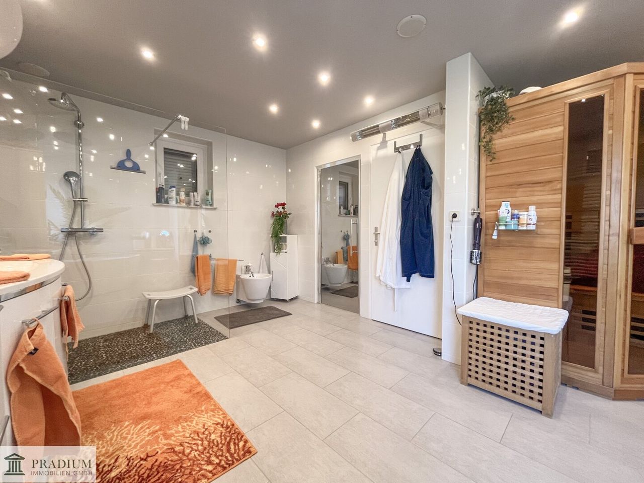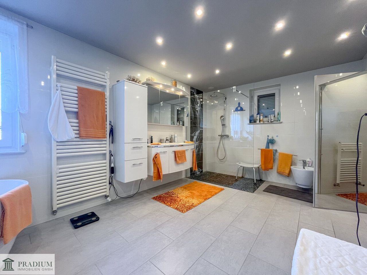 Hochwertige Sanierung des Badezimmers mit freistehender Badewanne und barrierefreier Dusche.