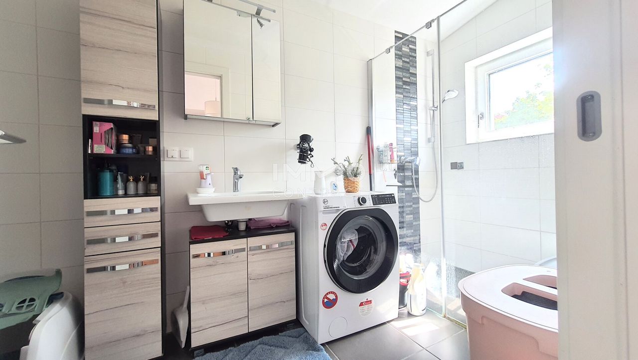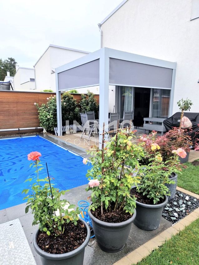Der Sommer steht vor der Tür. Entfliehen Sie der Hitze und verbringen Sie die heißeste Jahreszeit im eigenen Swimmingpool! Eingebettet in die sanften Hügel des Erholungsgebietes Wienerwald liegt dieses 2018 errichtete Haus. Durch die verkehrstechnisch sehr gute Lage (ca. 20 Min. nach Wien), wird die Markgemeinde Alland auch bei Pendlern immer beliebter. Im Erdgeschoß führt das Vorzimmer in das großzügig geschnittene Wohnzimmer mit Ausgang zum Garten und Pool. Hier können Sie abschalten und der Hitze im kühlen Nass trotzen. Im hinteren Bereich des Wohnzimmers liegt die hochwertige Einbauküche. Über einen kleinen Gang gelangt man zu den zwei Schlafzimmern, dem Tageslicht-Bad...