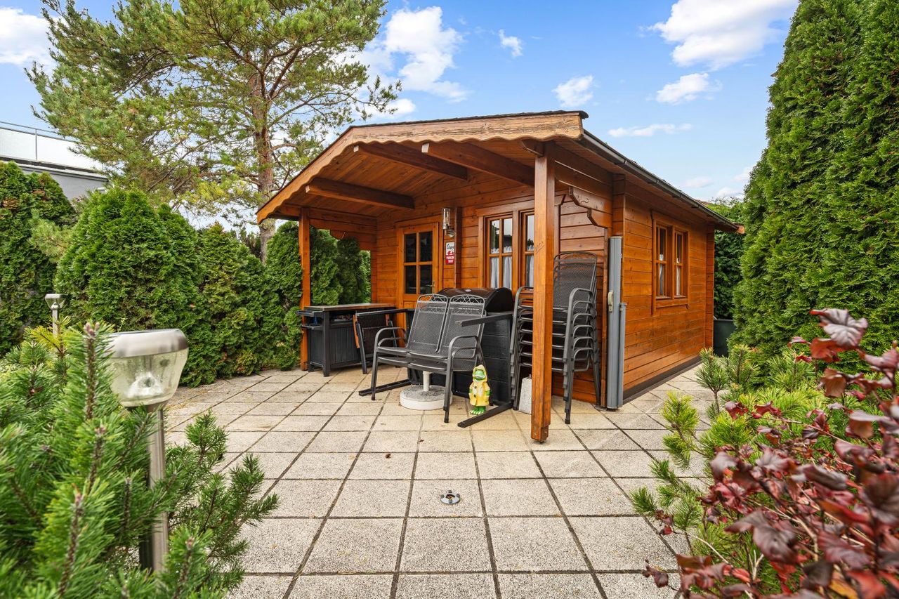 Ein separates Nebengebäude beherbergt eine zweite Garage sowie eine kleine Werkstätte – perfekt für Handwerker oder Bastler.Ein Holzgartenhaus bietet zusätzlichen Stauraum und rundet das attraktive Gesamtangebot ab. Ein eigener Brunnen steht für die Gartenbewässerung zur Verfügung.