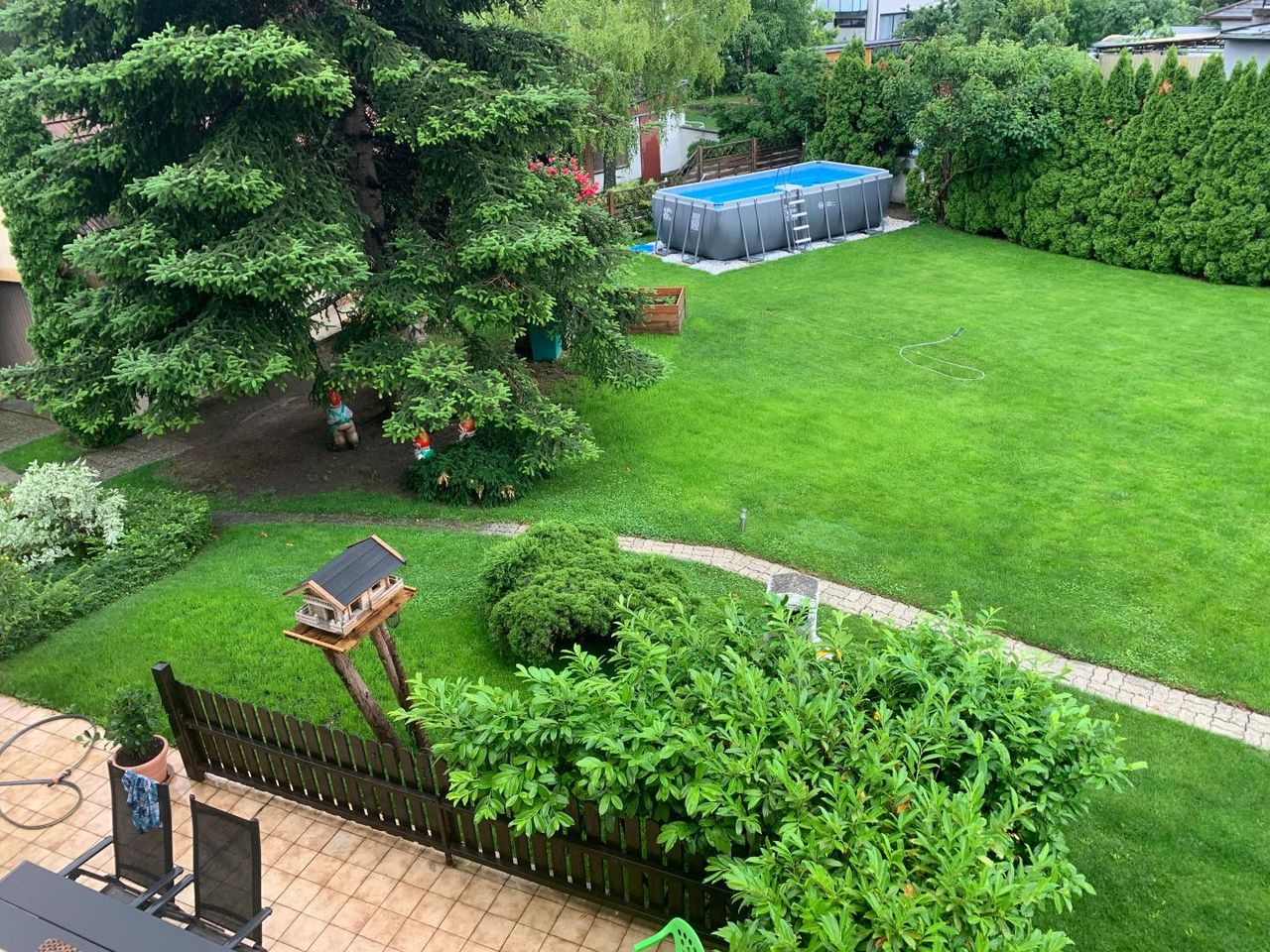 Der gepflegte Garten überzeugt mit seiner Größe und Gestaltungsmöglichkeiten.