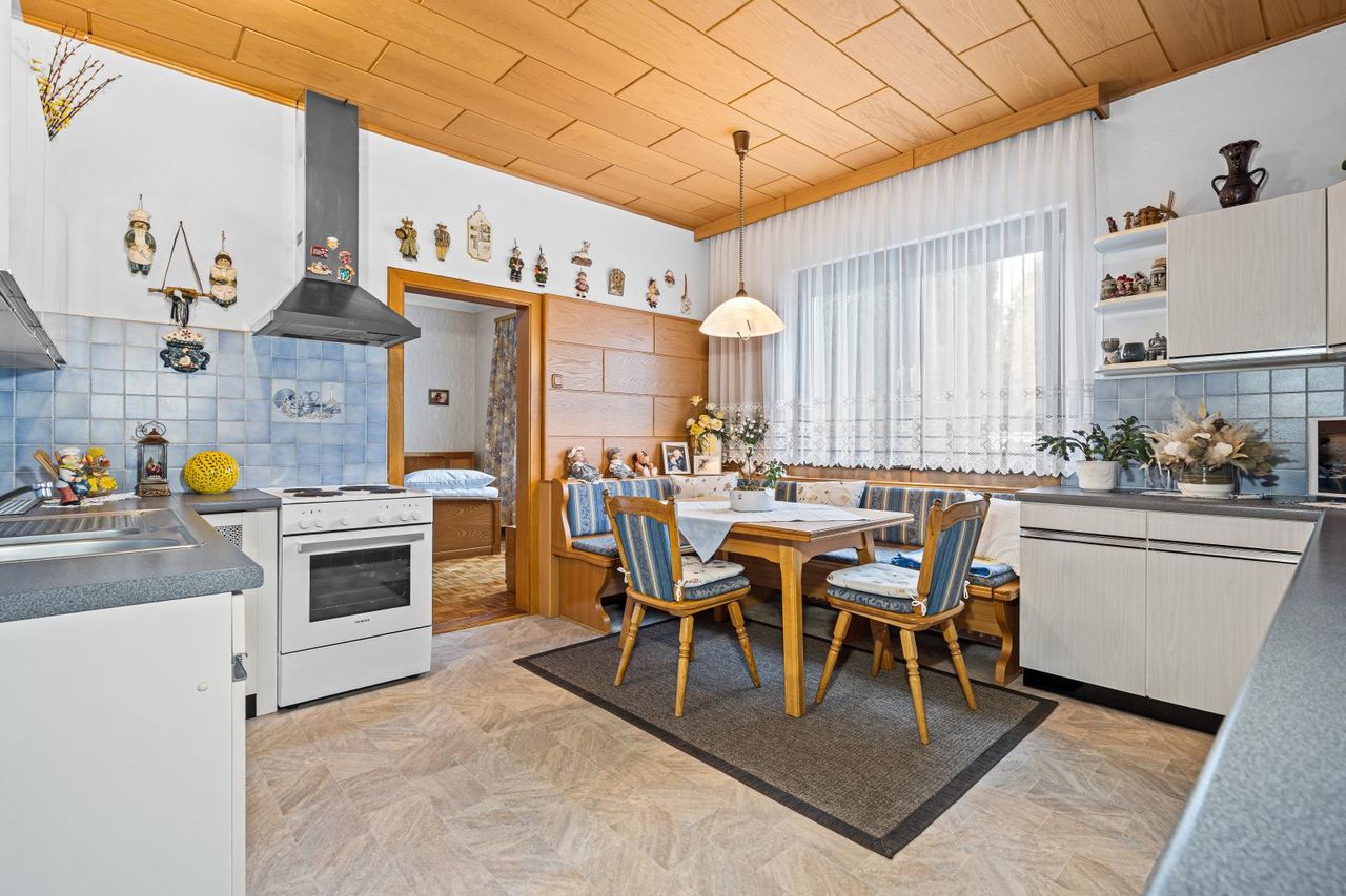 Das ursprüngliche Haus wurde 1959 errichtet und 1983 durch einen Anbau erweitert und aufgestockt. Es bietet vielfältige Nutzungsmöglichkeiten – sowohl als großzügiges Einfamilienhaus als auch als Zweifamilienhaus mit separaten Wohnbereichen.