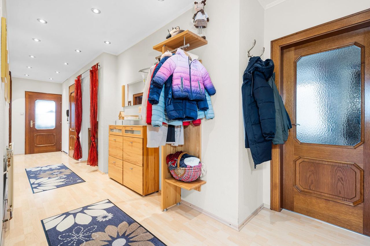 Vom Obergeschoss führt eine komfortable Treppe ins teilweise ausgebaute Dachgeschoss, das ein großes, vielseitig nutzbares Zimmer bietet – ideal als Büro, Hobbyraum oder Gästezimmer. Hier besteht auch noch die Möglichkeit weiter auszubauen.