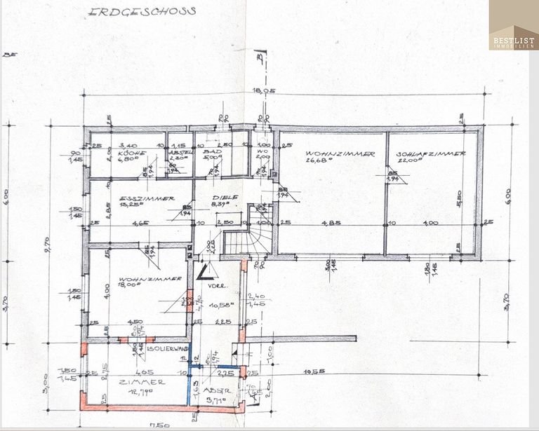 Mit rund 131,5 m² Wohnfläche im Hochparterre sowie zusätzlichen 63,37 m² Kellerfläche bietet das Haus viel Platz. Darüber hinaus eröffnet das großzügige Dachgeschoss, das bereits teilweise ausgebaut wurde, weiteres Potenzial für zusätzlichen Wohnraum – besonders interessant für größere Familien.