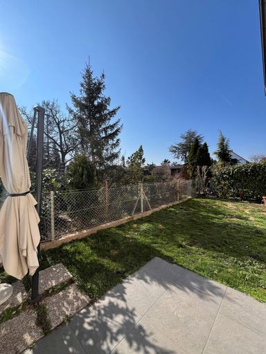 Ein ca. 50 m² großer Garten präsentiert sich als moderner, pflegeleichter Rückzugsort. Ein hochwertiges Gartengerätehäuschen sorgt für Ordnung und fügt sich harmonisch ins Gesamtbild ein. Die großzügige Terrasse bietet reichlich Platz für z.B. einen großen Esstisch und kann bei Bedarf sogar noch erweitert werden. Ergänzt wird der Außenbereich durch ein praktisches Hochbeet und eine insgesamt sehr pflegeleichte Gestaltung. Ideal für alle, die trotz eines anspruchsvollen Berufsalltags nicht auf entspannten Genuss im eigenen Garten verzichten möchten – und das mit minimalem Pflegeaufwand. Ein Standpool oder Whirlpool etwa könnte man zusätzlich anschaffen und hier unterbringen.