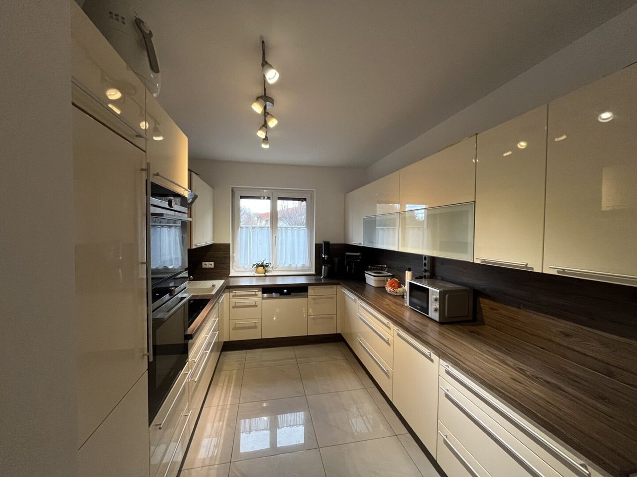 - als echtes Highlight eine große, top ausgestattete DAN-Küche: Viel Arbeitsfläche, durchdachter Stauraum und eine Komplett-Ausstattung, die auch anspruchsvolle Hobbyköche begeistert: Induktionsherd samt Dunstabzug, Backofen und Dampfgarer auf Augenhöhe, Geschirrspüler und eine Kühl-Gefrierkombination, und der Boden… ist zur leichten und hygienischen Reinigung verfliest.
