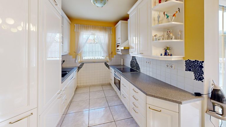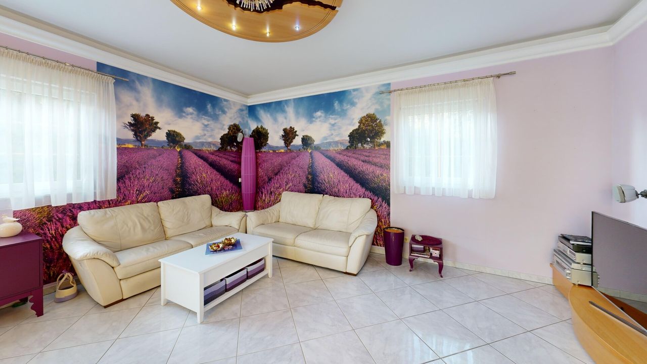 Im Innenbereich unterstreichen hochwertige Materialien den gepflegten Gesamtzustand. Eine italienische Hochglanz-Lackküche mit Geräten der Marke Miele sowie Valentino-Fliesen tragen zum stimmigen Wohnkonzept bei. Die Immobilie wird teilmöbliert übergeben.