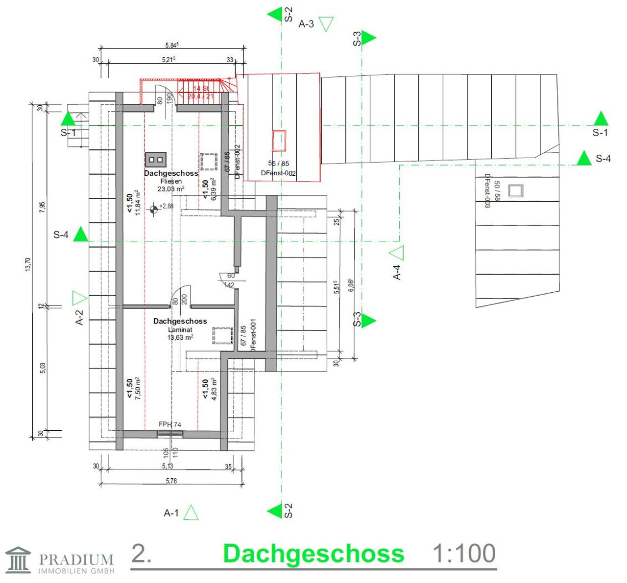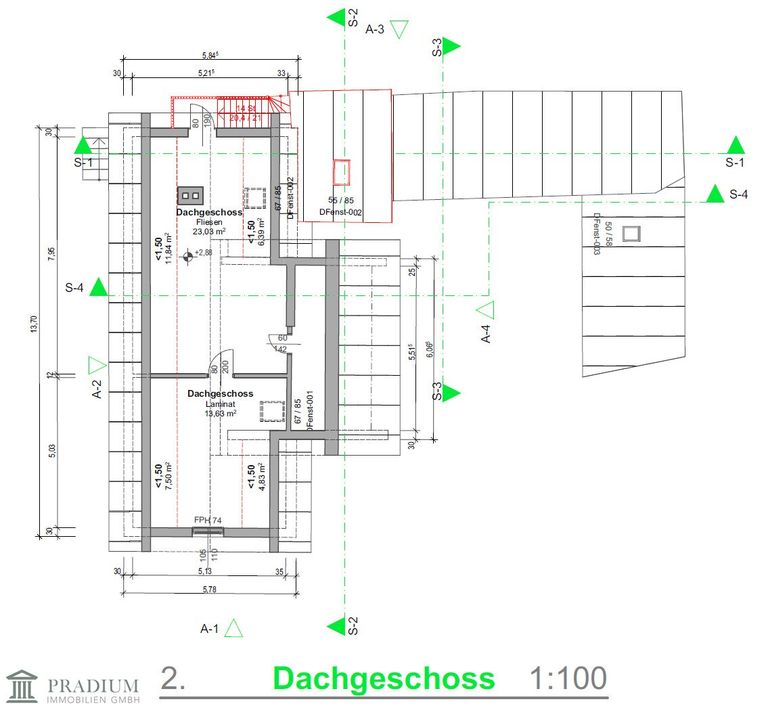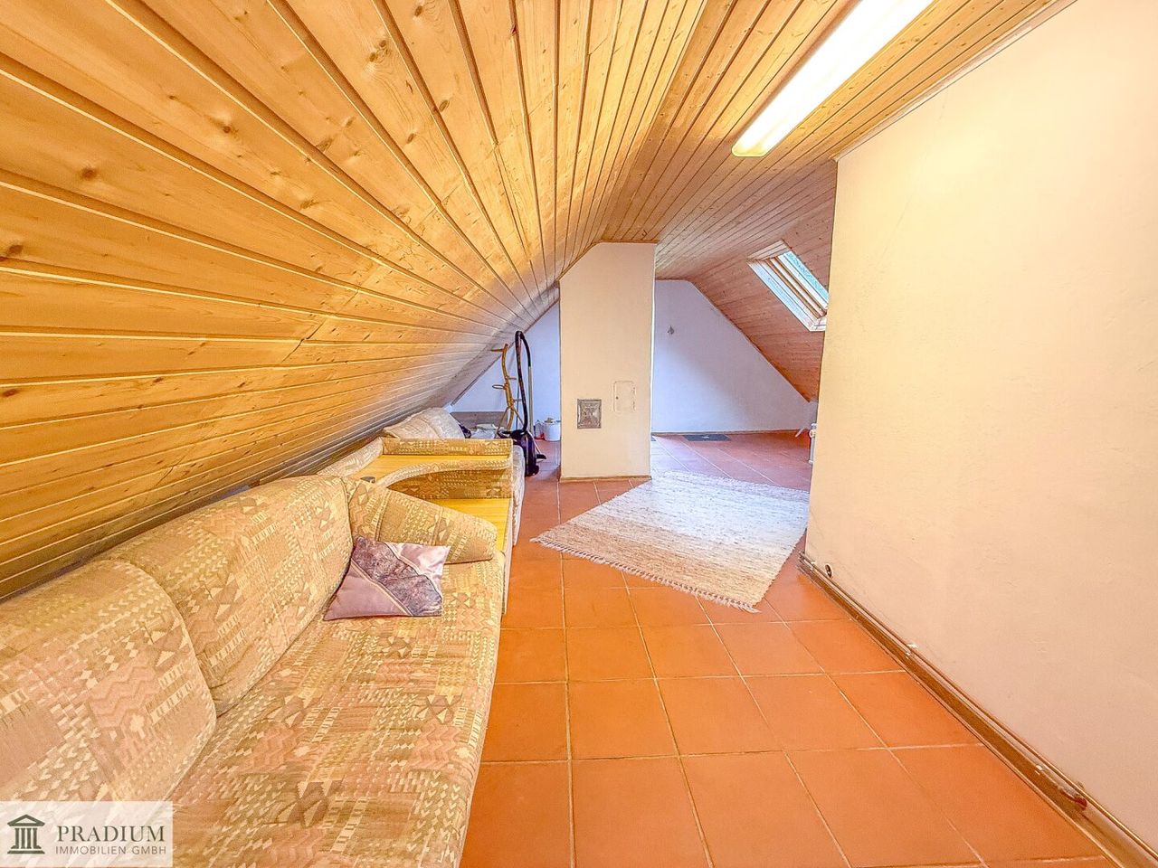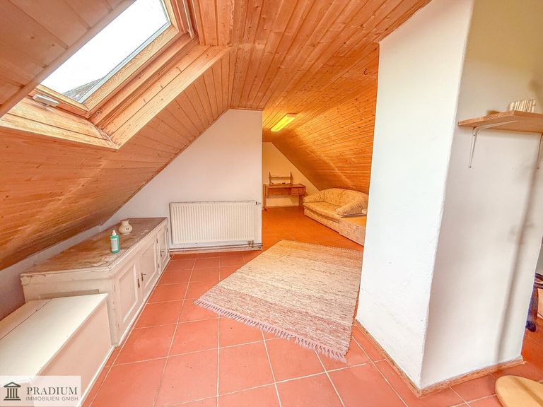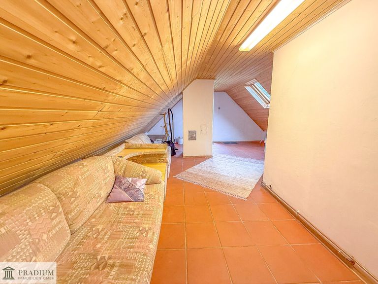 Hinweis: Der Ausbau des Dachgeschosses ist nicht behördlich genehmigt. Laut Auskunft des Eigentümers befinden sich sowohl die errichtete Treppe zum Dachgeschoss als auch das ausgebaute Badezimmers im Obergeschoss aktuell im Einreichverfahren.