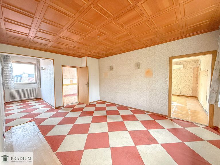 Das Haus überzeugt durch seine vielseitige Raumaufteilung und bietet mit insgesamt ca. 180 m² Wohnfläche auf 7,5 Zimmern zahlreiche Nutzungsmöglichkeiten – ideal sowohl für Eigennutzer als auch für Investoren. Die Liegenschaft ist sowohl über das Erdgeschoss als auch über das Obergeschoss separat begehbar, wodurch sich das Haus besonders gut für die Nutzung als zwei eigenständige Wohneinheiten eignet. Beide Ebenen verfügen über entsprechende Küchenanschlüsse, was eine flexible Gestaltung ermöglicht. Im Erdgeschoss stehen Ihnen drei Zimmer zur Verfügung. Von hier aus gelangen Sie direkt auf eine großzügige Terrasse, die zum Entspannen einlädt und gleichzeitig Zugang zu den Nebengebäuden, Lagerräumen sowie einer Gartenhütte bietet. Diese zusätzlichen Flächen eignen sich hervorragend zur Aufbewahrung oder als Werkstatt- bzw. Hobbybereiche. Das Obergeschoss umfasst 2,5 Zimmer und bietet im Schlafzimmer Zugang zu einem kleinen Balkon mit südwestlicher Ausrichtung, von dem aus Sie die Abendsonne genießen können. Das Dachgeschoss wurde bereits ausgebaut und verfügt über ein Wohnzimmer, ein Schlafzimmer sowie ein eigenes Badezimmer. Es ist über eine separate Außentreppe zugänglich, wodurch sich auch hier zusätzliche Nutzungsmöglichkeiten ergeben. Es wird darauf hingewiesen, dass der Ausbau des Dachgeschosses nicht genehmigt ist. Die Liegenschaft verfügt zudem über mehrere Nebengebäude, die vielseitig nutzbar sind und zusätzlichen Stauraum bieten. Das Haus befindet sich insgesamt in einem renovierungsbedürftigen Zustand, bietet jedoch enormes Potenzial, um mit entsprechender Modernisierung ein wunderschönes Eigenheim oder ein attraktives Anlageobjekt zu schaffen. Alternativ eröffnet das großzügige Grundstück auch interessante Perspektiven für Bauträger: Ein Abbruch des Bestandsgebäudes sowie eine Neubebauung mit bis zu ca. 40 % der Grundstücksfläche sind laut Bebauungsbestimmungen möglich, wodurch sich eine potenzielle Wohnnutzfläche von rund 800 m² realisieren ließe.