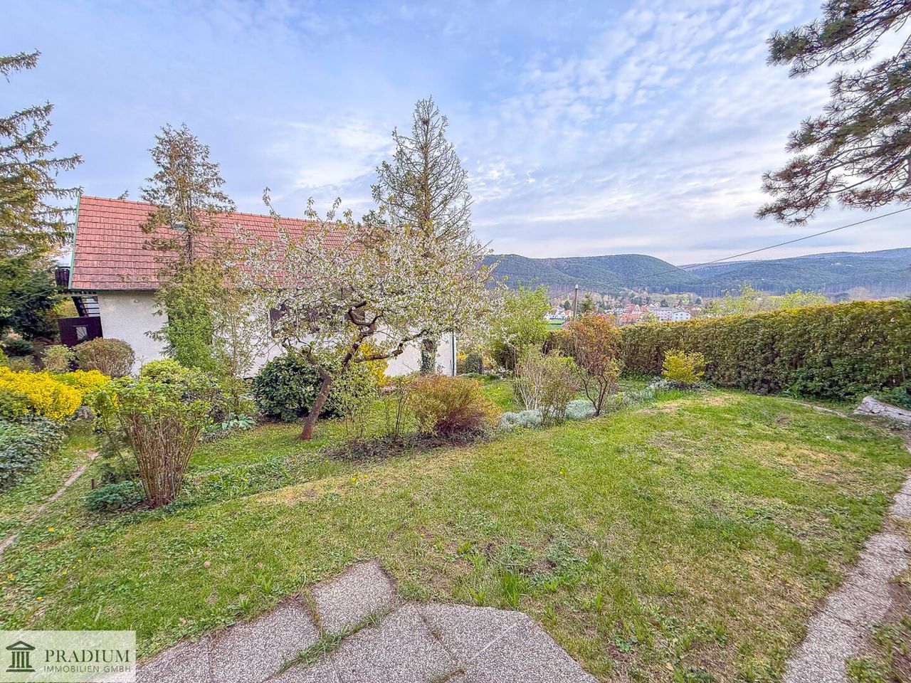Diese wunderschöne Liegenschaft in St. Veit bei Berndorf besticht durch ihre erhöhte Lage und den herrlichen Blick über den ruhigen Ort. Auf einem großzügigen Grundstück von ca. 835 m² in sonniger Südwestlage eröffnet sich ein vielseitiges Angebot für Eigennutzer, Investoren oder Projektentwickler. Das bestehende Haus erstreckt sich über drei Etagen und bietet flexible Nutzungsmöglichkeiten: Ob als großzügiges Einfamilienhaus, zur Schaffung von bis zu drei eigenständigen Wohneinheiten oder als Basis für ein Neubauprojekt – hier stehen Ihnen zahlreiche Optionen offen. Laut Bebauungsplan ist eine Bebauung von bis zu ca. 40 % der Grundstücksfläche möglich, während das Grundstück derzeit lediglich zu etwa 20 % bebaut ist. Besonders hervorzuheben ist die ruhige Lage: Direkt hinter dem Grundstück erstreckt sich ein Feld, das für zusätzliche Privatsphäre sorgt. Der liebevoll angelegte Garten mit gewachsenem Baumbestand rundet dieses attraktive Angebot ab und schafft eine idyllische Atmosphäre zum Entspannen und Genießen.