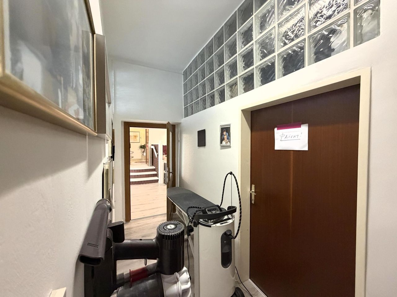 - in einem kleinen Vorraum mit Garderobefunktion, und