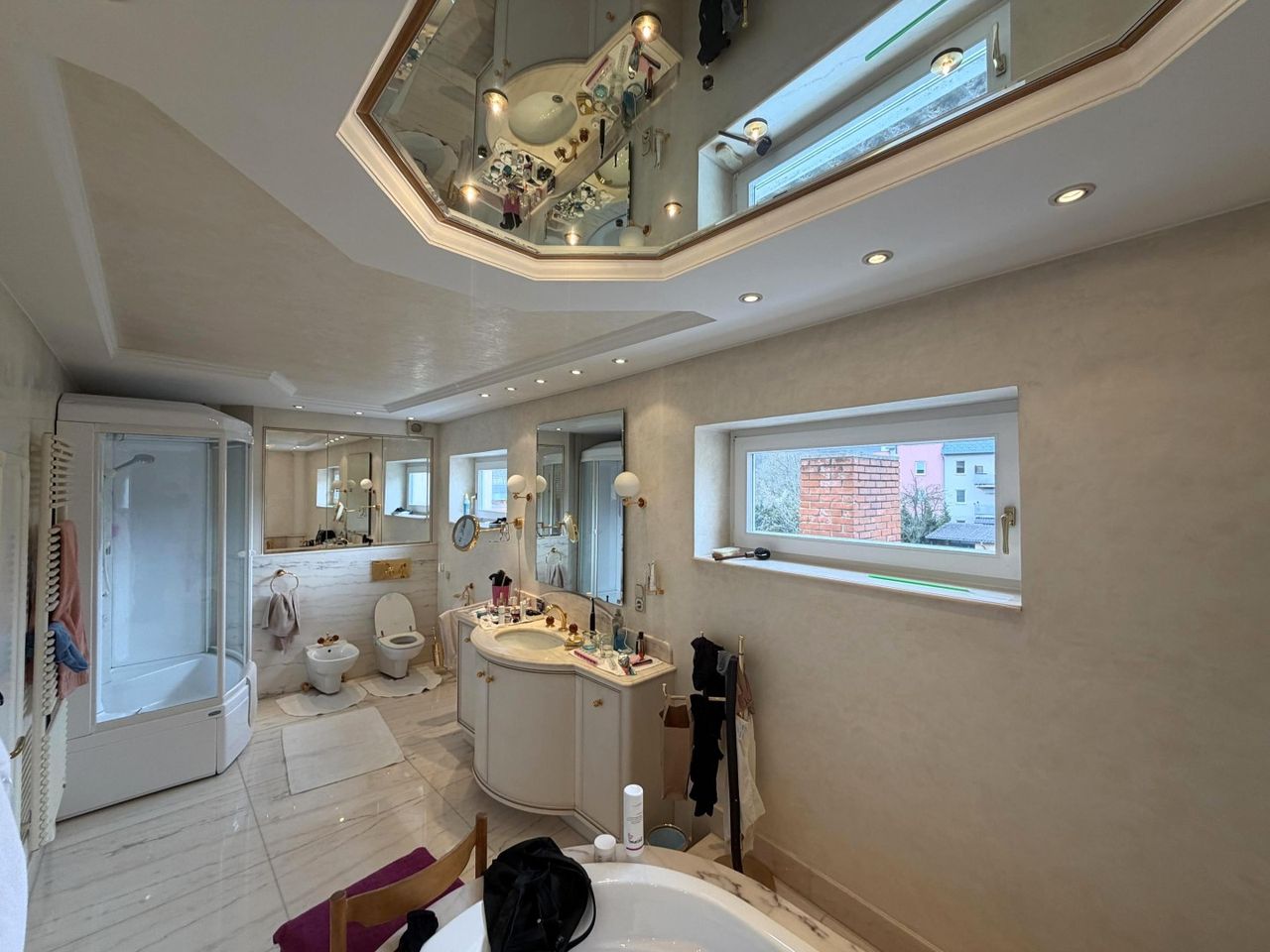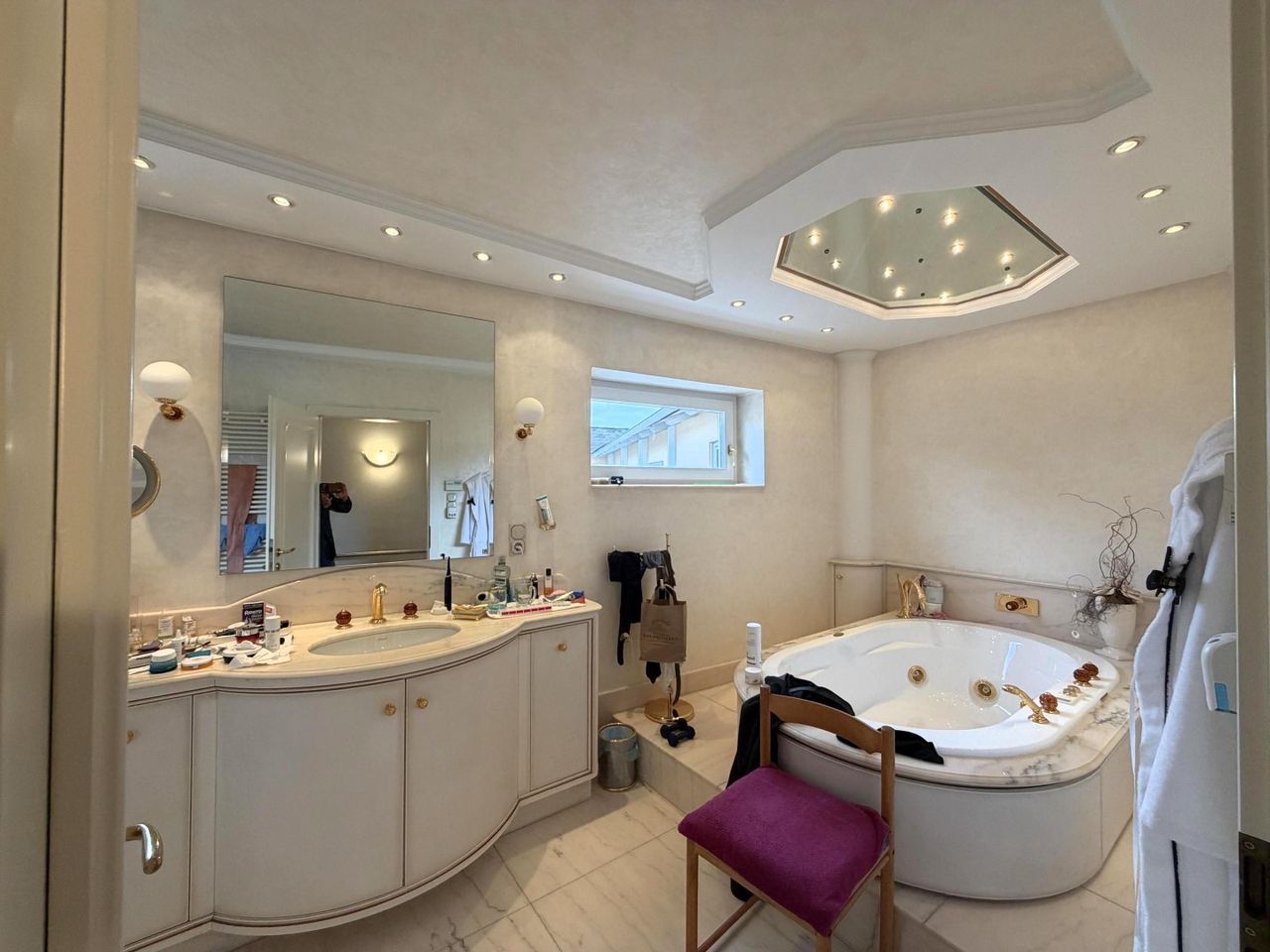 - ein großes Masterbad mit Badewanne / Jacuzzi, Bidet, Toilette, Dusche und Waschbecken und Deckenspots