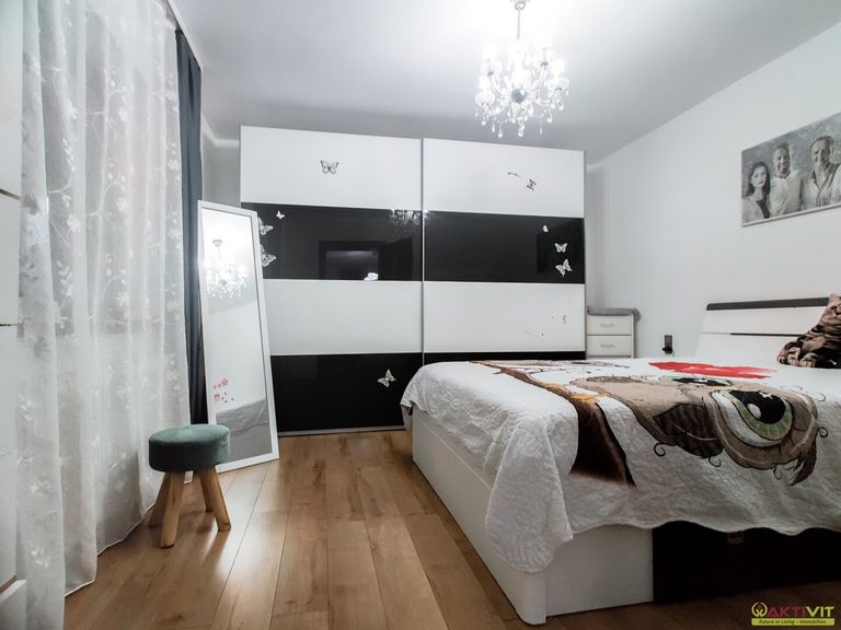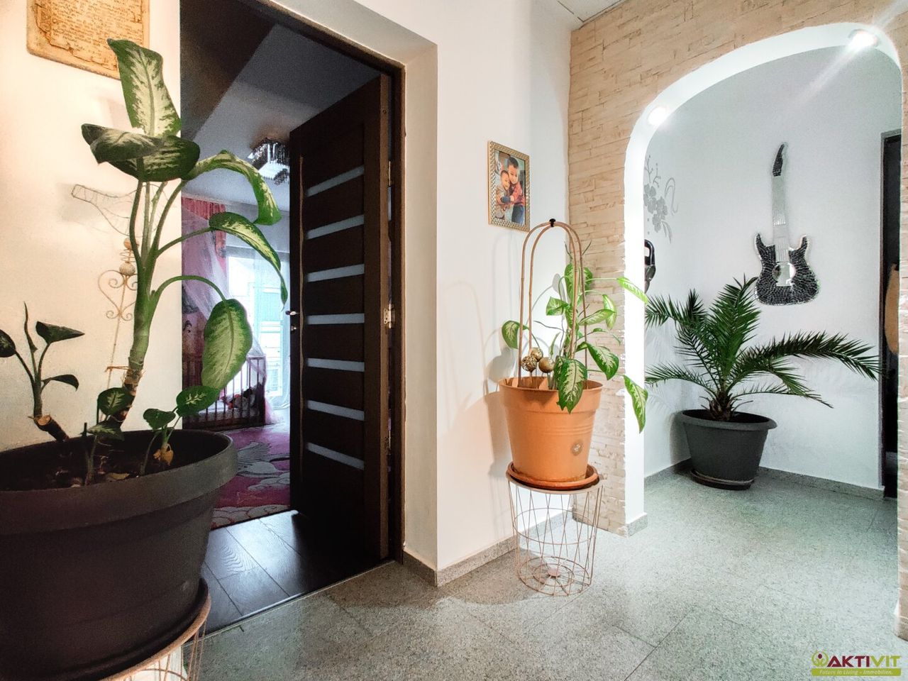 Die Ausstattung umfasst Fliesen- und Laminatböden, eine Einbauküche sowie eingerichtete Badezimmer mit Fenster, Dusche und Badewanne. Beheizt wird das Haus über eine zentrale Fernwärmeversorgung. Kabel-/Sat-TV und der Gartenpool ergänzen das Gesamtpaket.