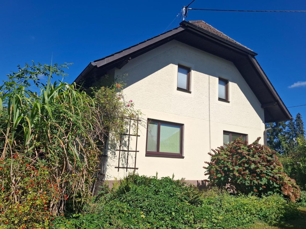 Die Immobilie verfügt über zwei Wohneinheiten und einem schönen Garten an der Südseite.