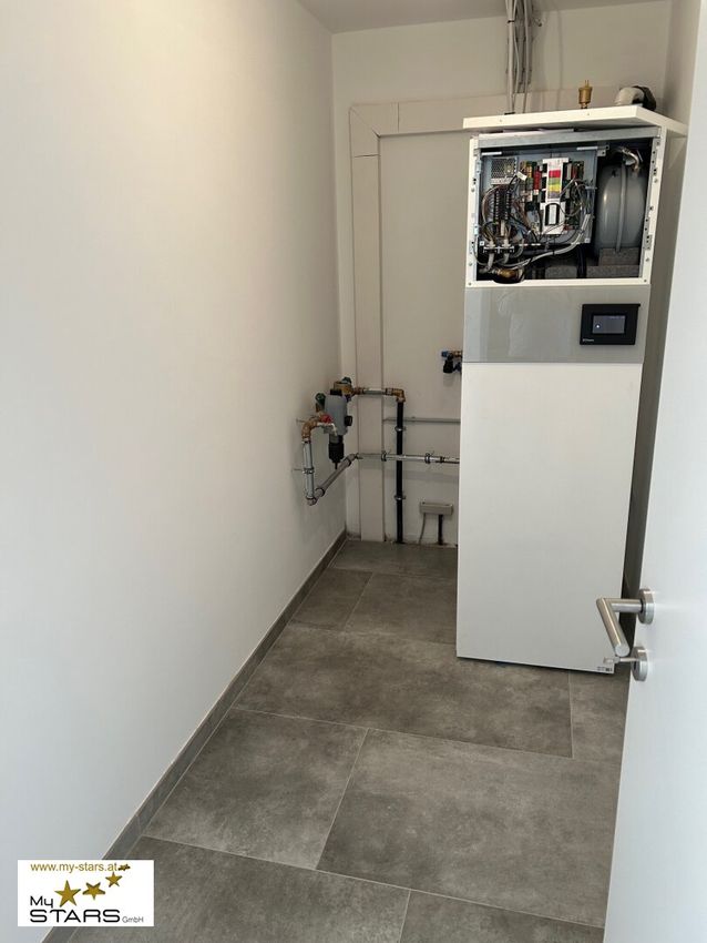 Die Ausstattung mit weißen Kunex-Türen, Villeroy & Boch WC's, elektrische Raffstores an der Südseite, Fußbodenheizung mit Einzelraumregelungen, eigenem Hausbrunnen für die 3 Neubauhäuser lassen keine Wünsche offen: Genießen Sie die Vorteile von Fliesen und Landhausdielen-Parkettböden, die nicht nur stilvoll, sondern auch pflegeleicht sind. Die moderne Zentralheizung sorgt für wohlige Wärme an kalten Winterabenden, während das Badezimmer mit Fenster, Badewanne und Dusche zum Entspannen einlädt.
