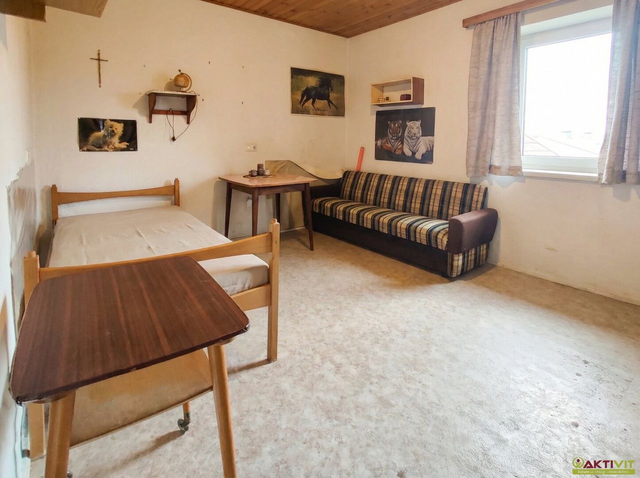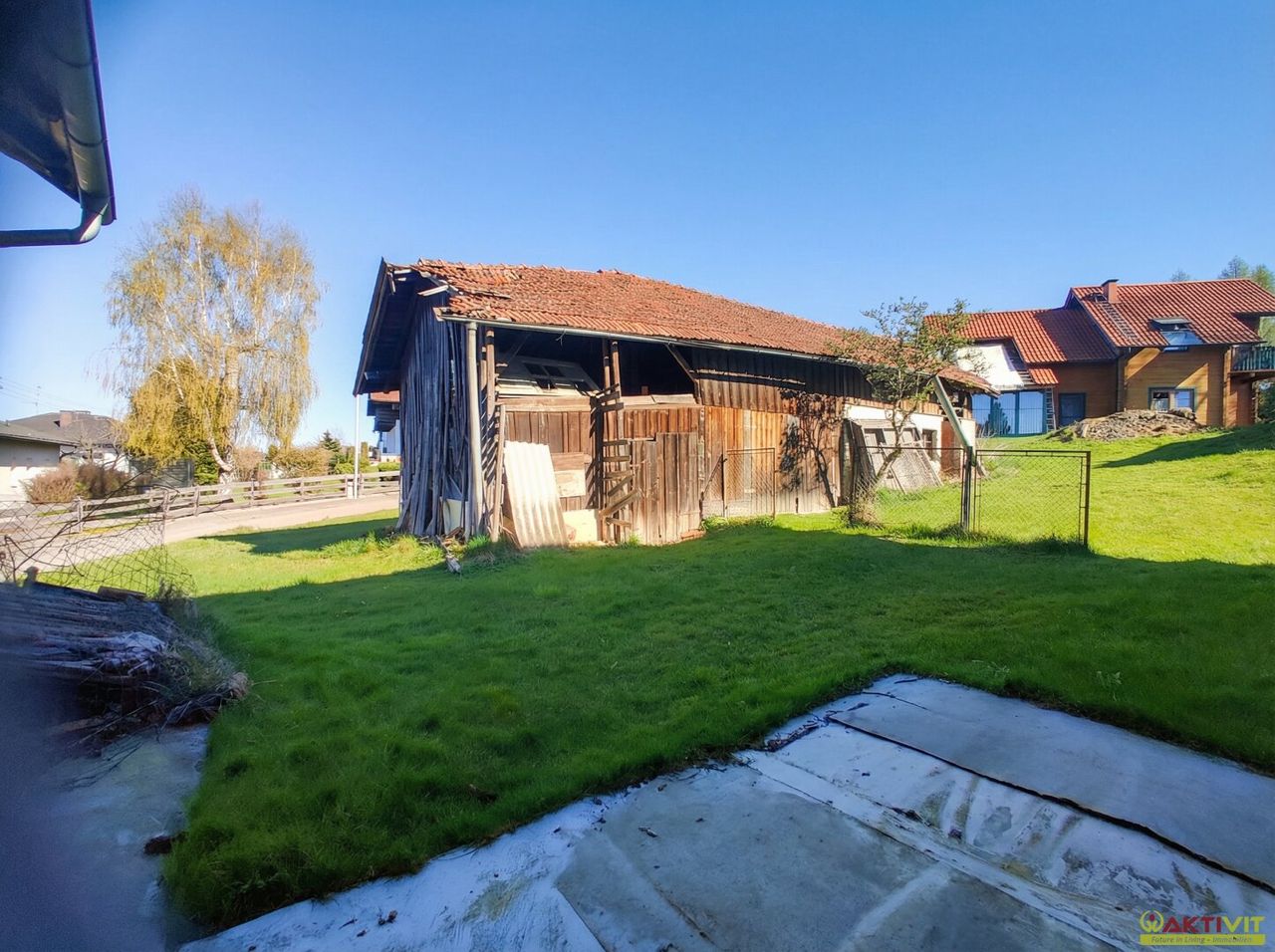 Der Außenbereich bietet viel Platz und wird durch den Stall mit ca. 100 m² Nutzfläche sowie die alte Hütte zusätzlich aufgewertet. Dadurch eignet sich die Liegenschaft besonders für Käufer, die neben Wohnfläche auch praktische Nebenflächen und Freiraum am eigenen Grundstück suchen.